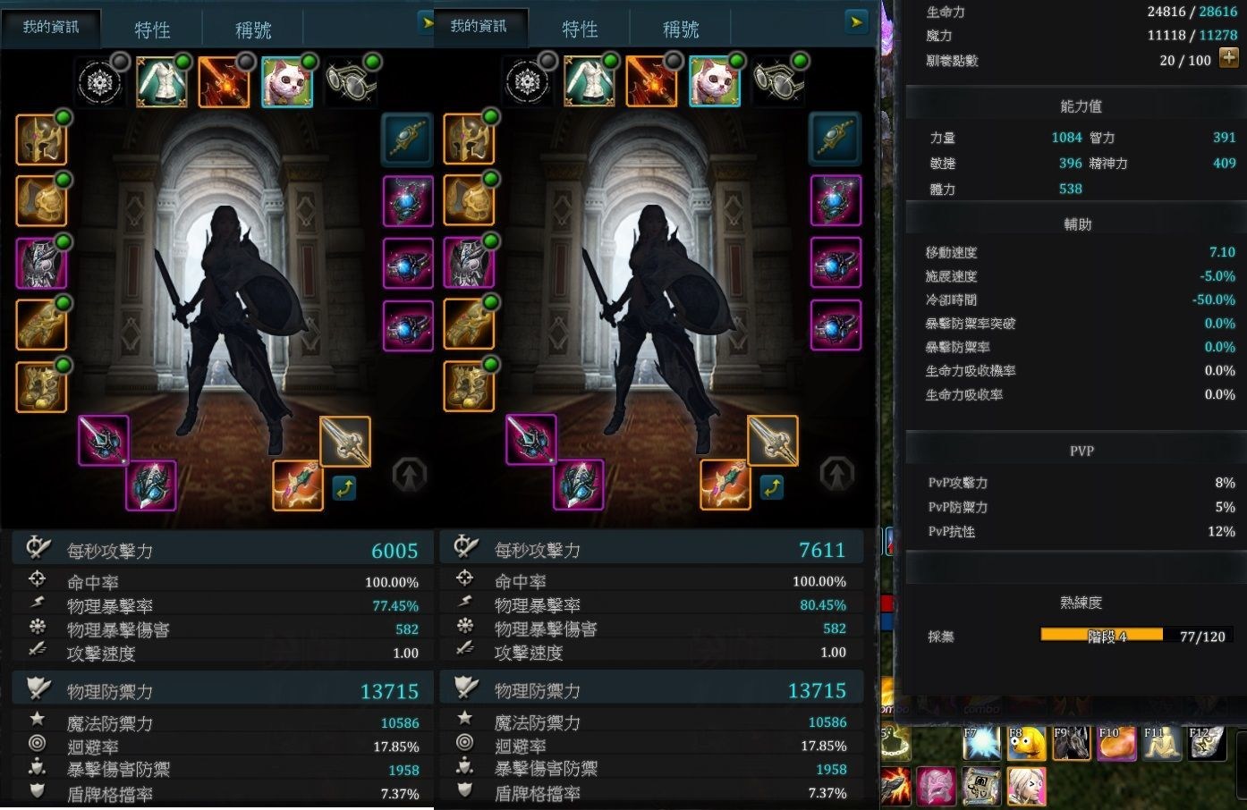 左邊是無BUFF 右邊是戰鬥光環跟倫多寵物(副本內還有祭司BUFF+鎖鏈BUFF 秒傷約8200多)